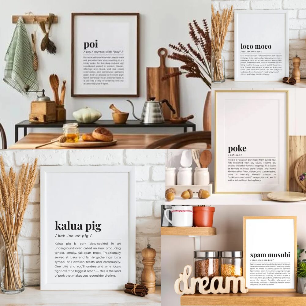 That’s why I created my Hawaiian Food Definition Prints — playful, printable wall art that celebrates these local favorites while giving you a little piece of the islands to hang in your kitchen, office, or gift to someone special.