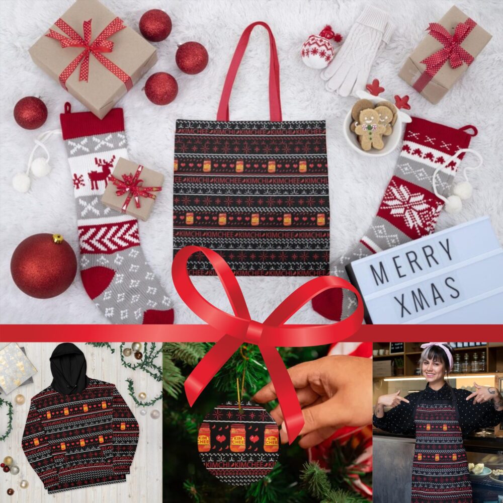 This playful design isn’t just for hoodies — you can rock it (or gift it!) on tote bags, ornaments, kitchen aprons, and more. Mix, match, and spread a little holiday fun wherever you go! A fun conversation starter for holiday parties, perfect for gifting your favorite foodie or kimchi lover.